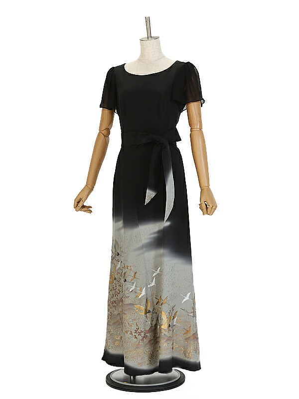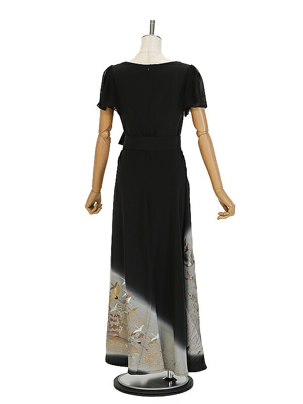 留袖ドレス〈黒/鶴模様〉7号【レンタル3泊4日】
