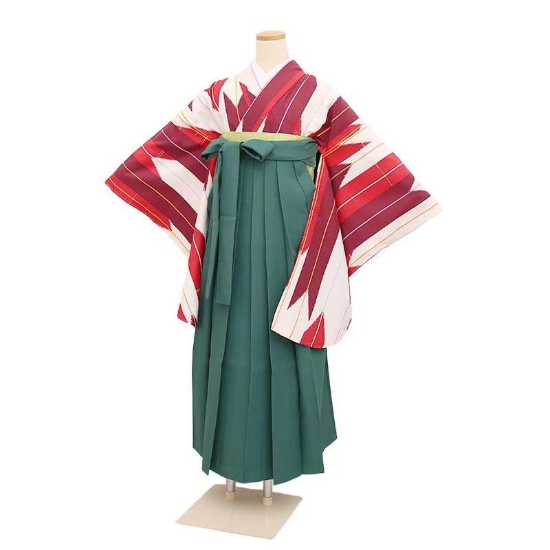 袴 レンタル 赤矢絣×グリーン158cm-163cm [7号-13号] 大学生 卒業袴 貸衣装 女性 着物 専門学校 謝恩会 和装【0AG0005】 0005