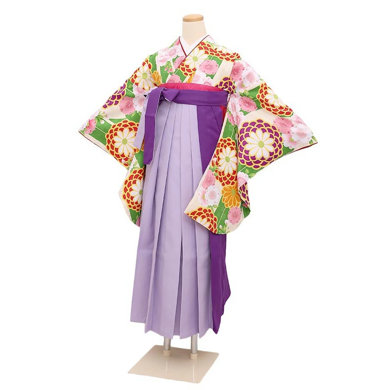 袴 レンタル 緑矢絣に菊と桜×パープル158cm-163cm [7号-13号] 大学生 卒業袴 貸衣装 女性 着物 専門学校 謝恩会 和装【0AG0007】 0007