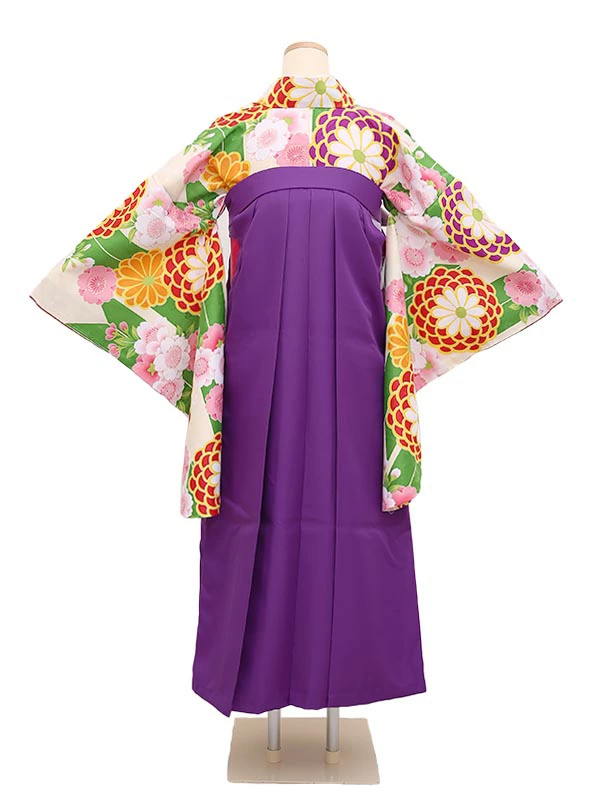 袴 緑矢絣に菊と桜×パープル袴 0007