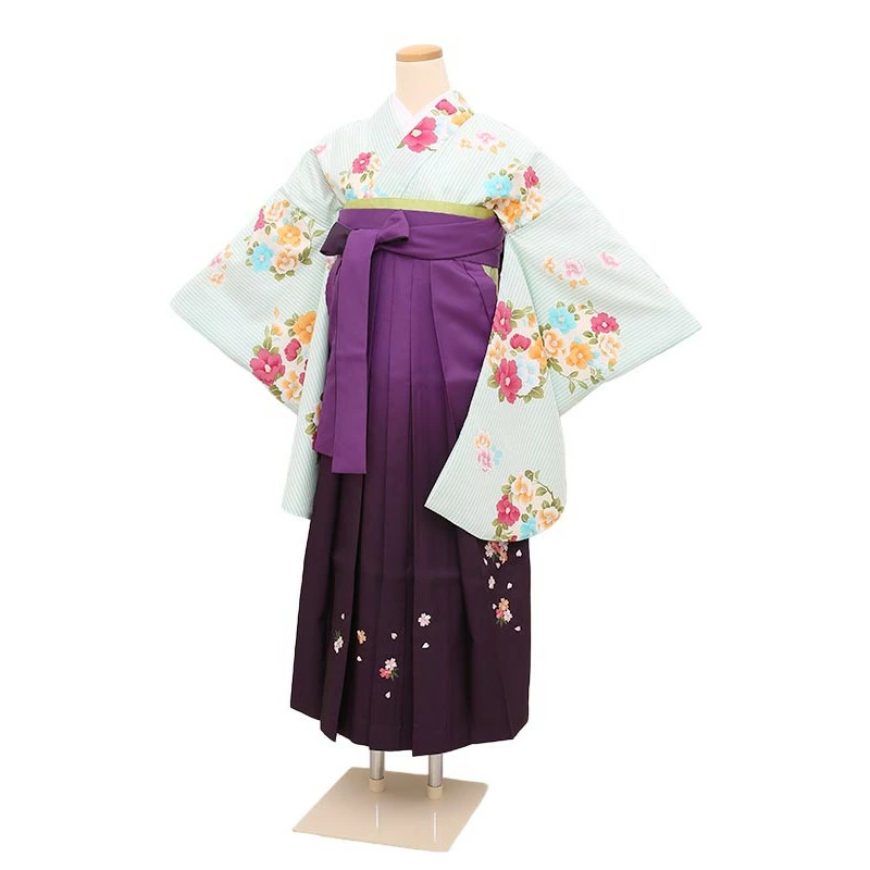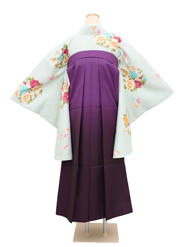 袴 水色ストライプに椿の花丸紋×紫ぼかし袴 0023