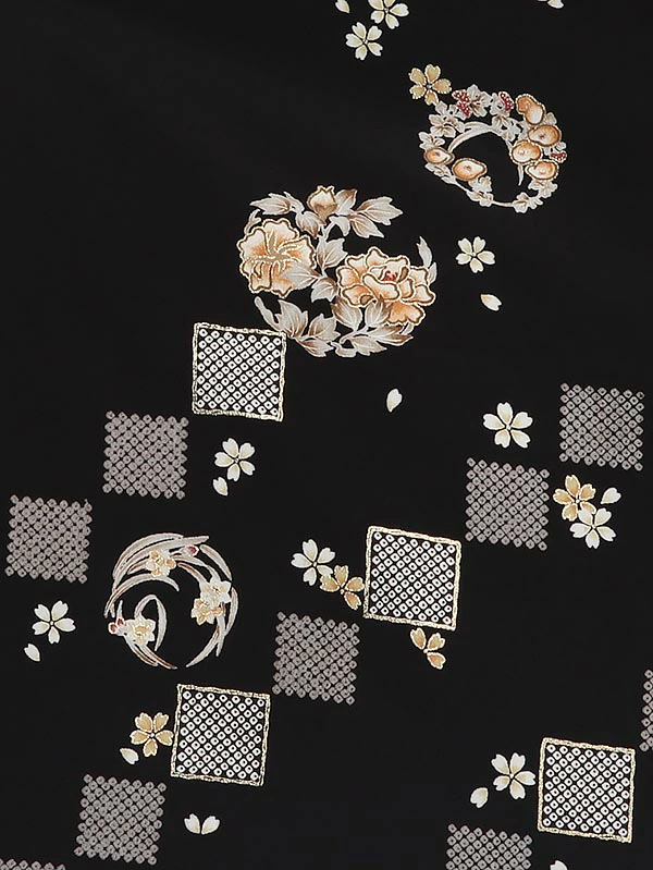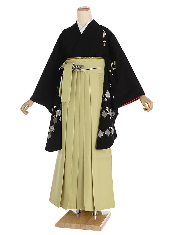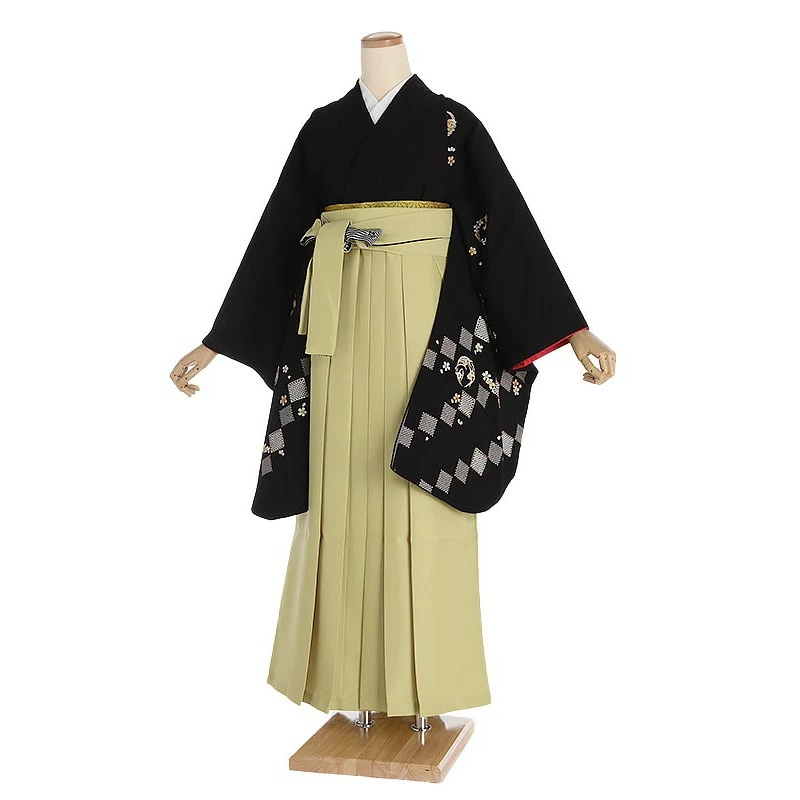 先生・教員向け袴 黒地桜×カーキ袴 0033