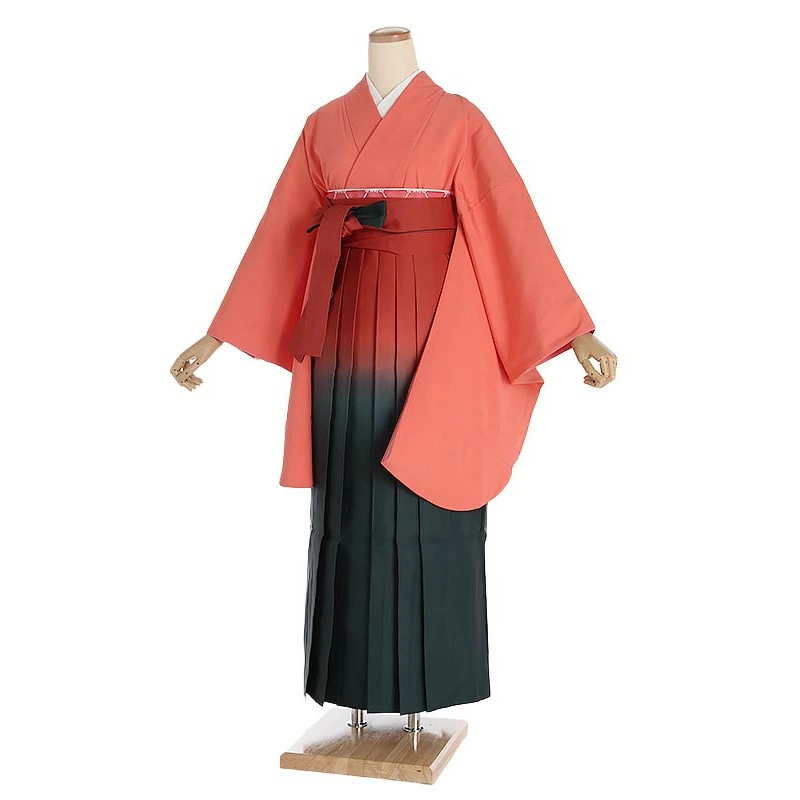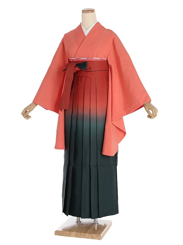 先生・教員向け袴 ピンク無地×緑ぼかし袴 0037