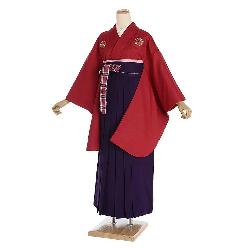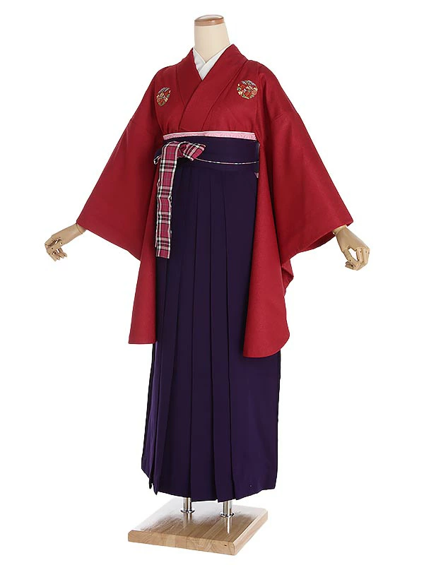 先生・教員向け袴 えんじ地花丸紋×パープル袴 0039