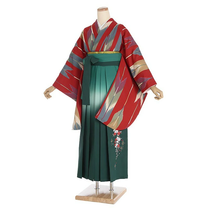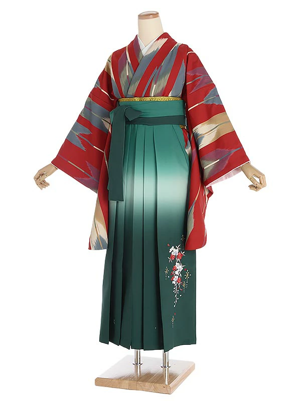 袴 赤地矢羽根×緑ぼかし袴 0048