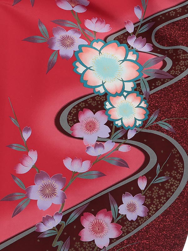 袴 桜に流水×赤緑ぼかし袴 0059