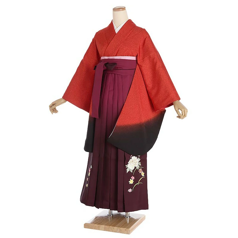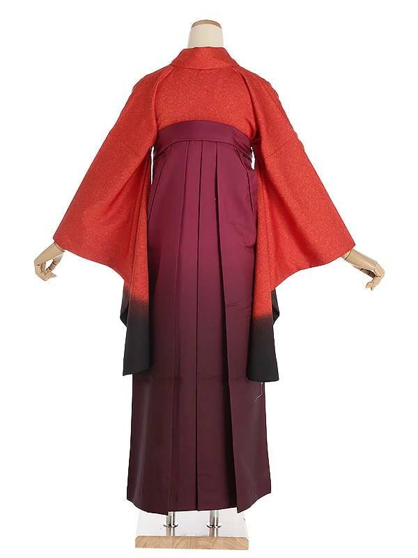 先生・教員向け 袴レンタル 赤黒ぼかし×パープル袴セット 150cm-155cm [7号-13号] 大学生 卒業袴 貸衣装 女性 着物 専門学校 謝恩会 和装【0AG0064】