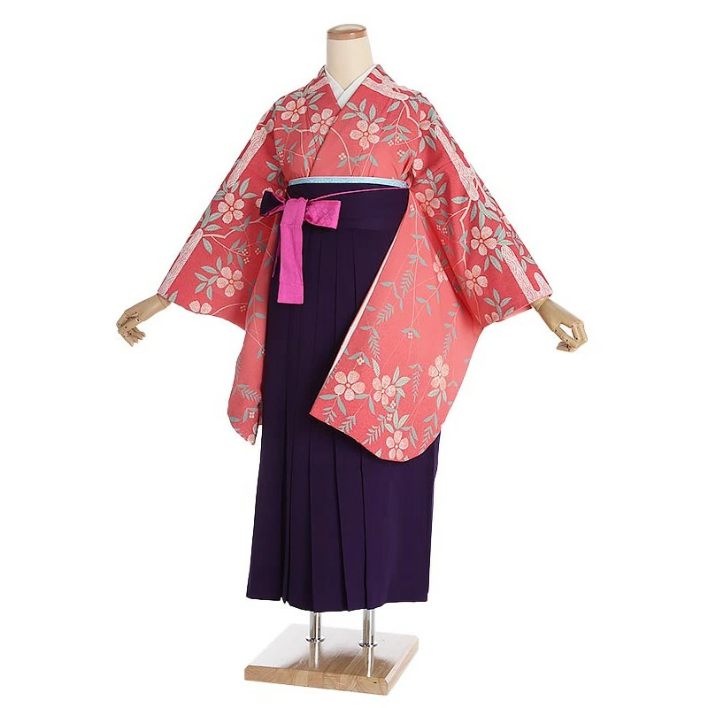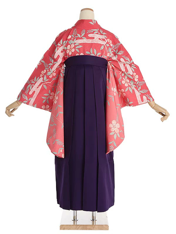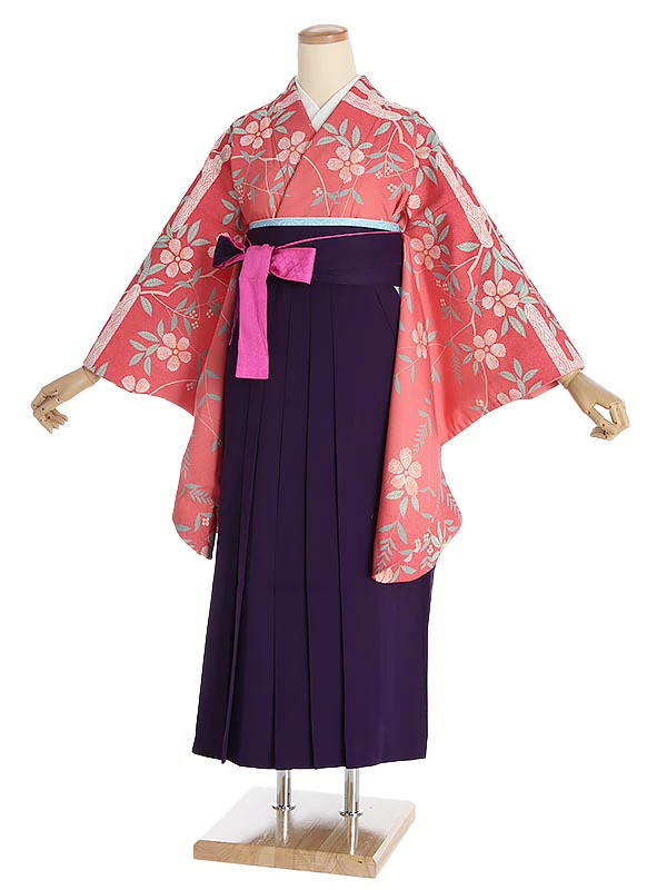 先生・教員向け袴 ピンク桜に霞×パープル袴 0074