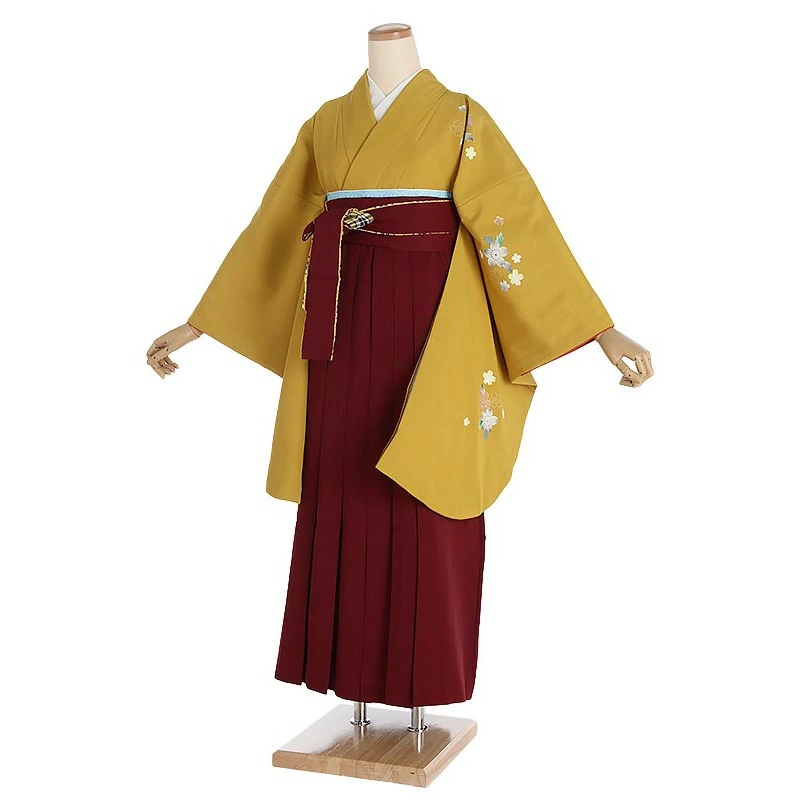先生・教員向け袴 からし地桜×エンジ袴 0080