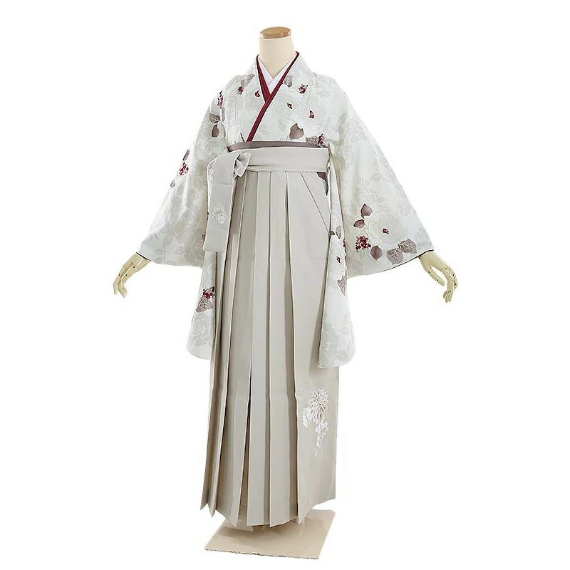 袴レンタル JAPAN STYLE×中村里砂 オフホワイトにバラ 158cm-163cm [7号-13号] 大学生 卒業袴 貸衣装 女性 着物 専門学校 謝恩会 和装【0AG0082】