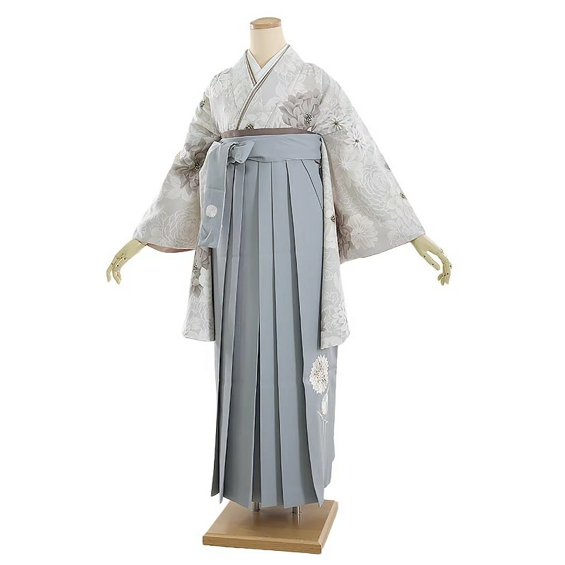 袴レンタル 紅一点 薄グレー地に菊 158cm-163cm [7号-13号] 大学生 卒業袴 貸衣装 女性 着物 専門学校 謝恩会 和装【0AG0084】