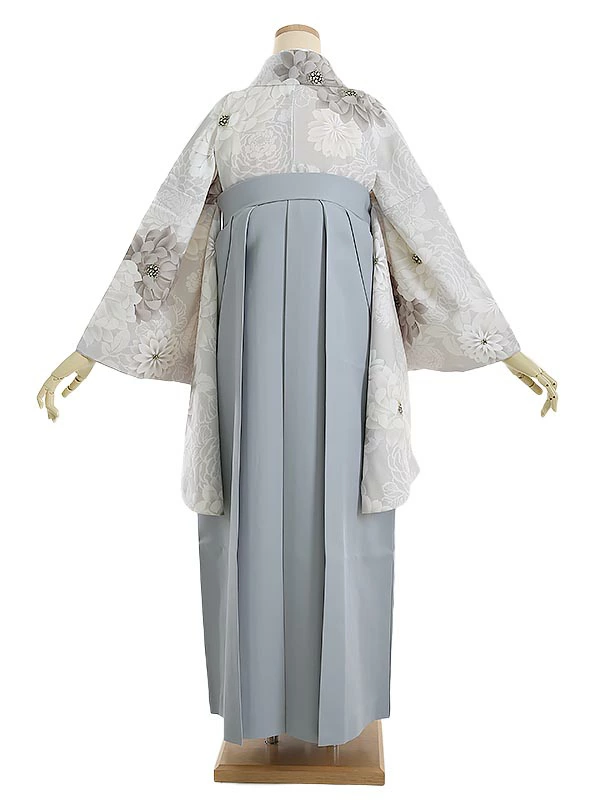 袴 0084 紅一点 薄グレー地に菊