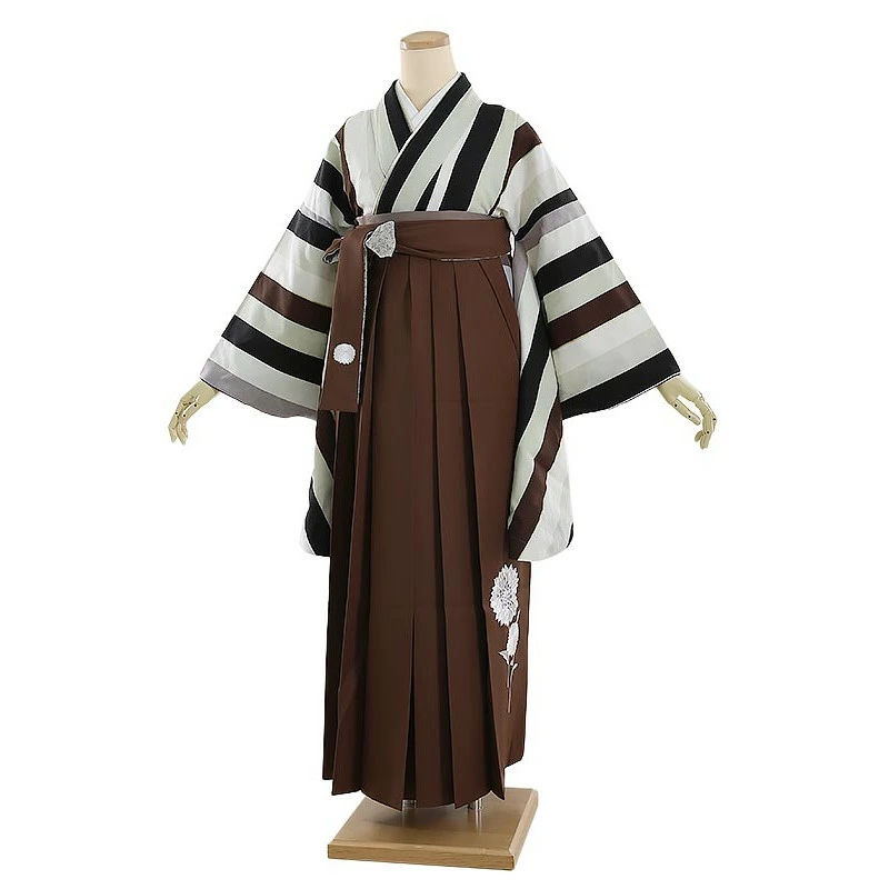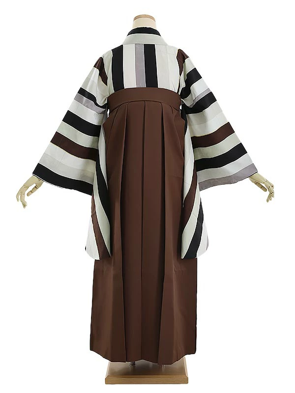 先生・教員向け 袴レンタル 紅一点 マルチストライプ黒茶 158cm-163cm [7号-13号] 大学生 卒業袴 貸衣装 女性 着物 専門学校 謝恩会 和装【0AG0086】