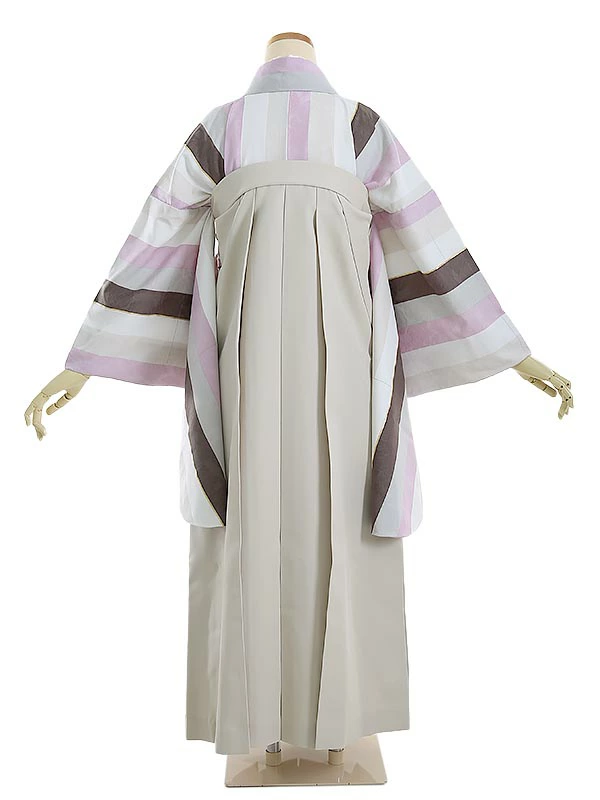 先生・教員向け 袴レンタル 紅一点 マルチストライプピンクグレー 158cm-163cm [7号-13号] 大学生 卒業袴 貸衣装 女性 着物 専門学校 謝恩会 和装【0AG0087】