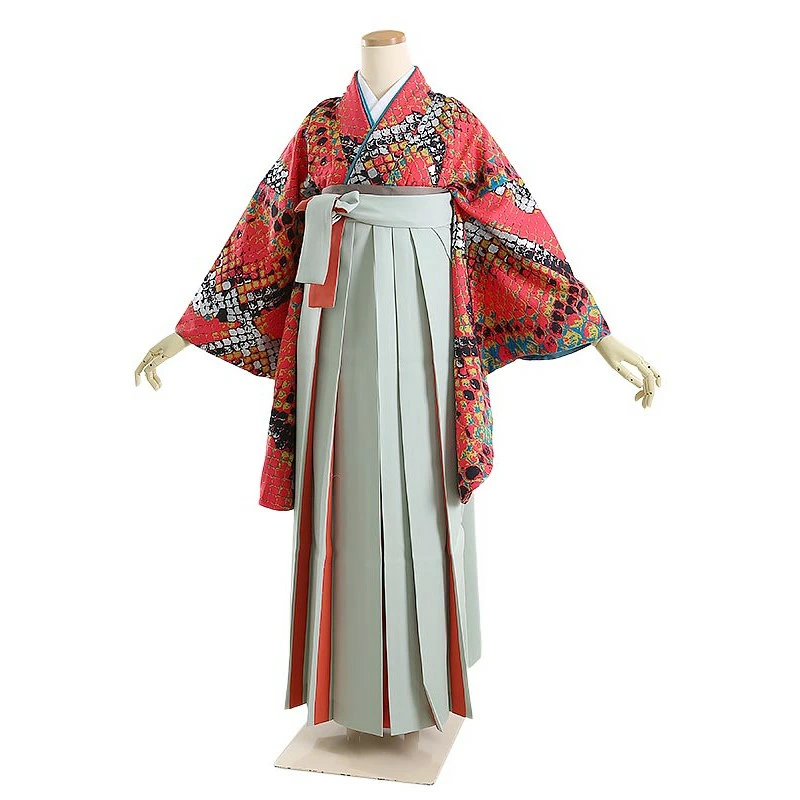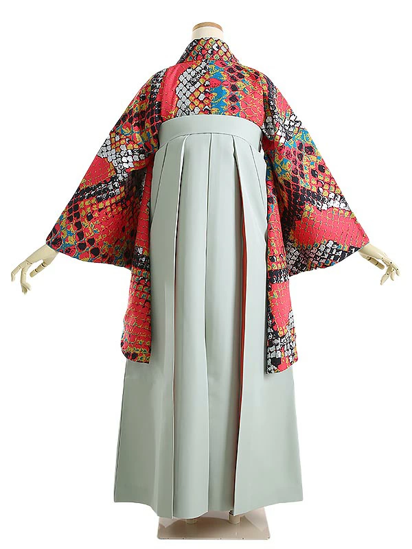 袴 0093 モダンアンテナ 赤地パイソン柄
