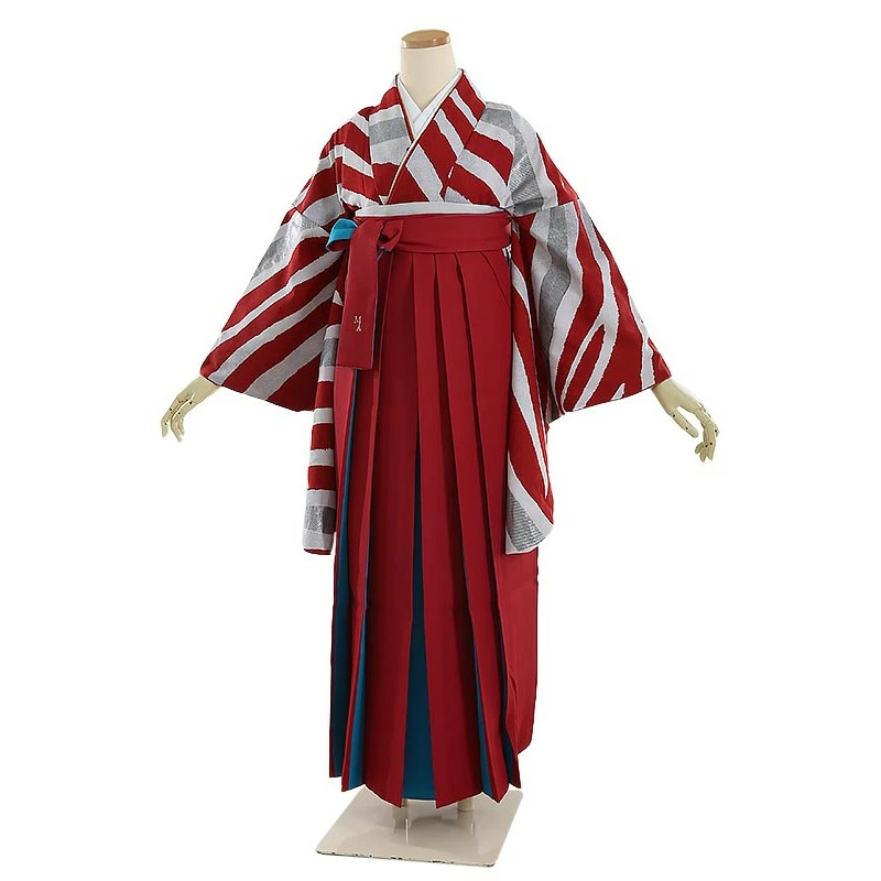 袴レンタル モダンアンテナ 赤地ゼブラ柄 158cm-163cm [7号-13号] 大学生 卒業袴 貸衣装 女性 着物 専門学校 謝恩会 和装【0AG0095】