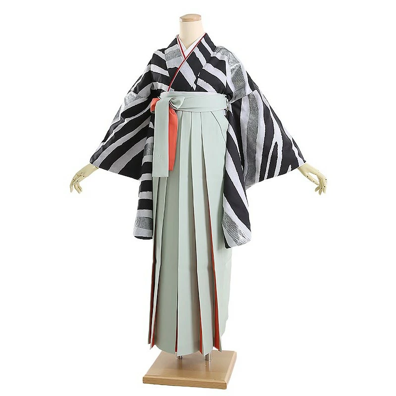袴レンタル モノトーンゼブラ柄 158cm-163cm [7号-13号] 大学生 卒業袴 貸衣装 女性 着物 専門学校 謝恩会 和装【0AG0096】