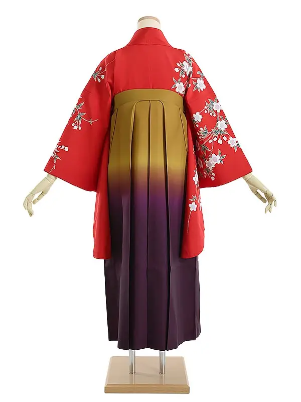 袴 0109 赤地にしだれ桜×からし紫グラデ袴