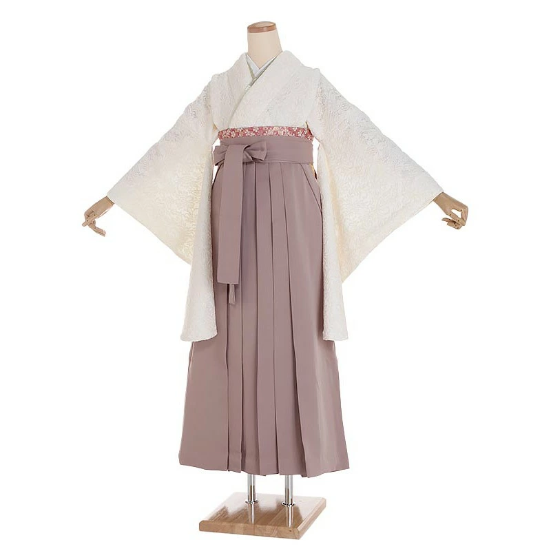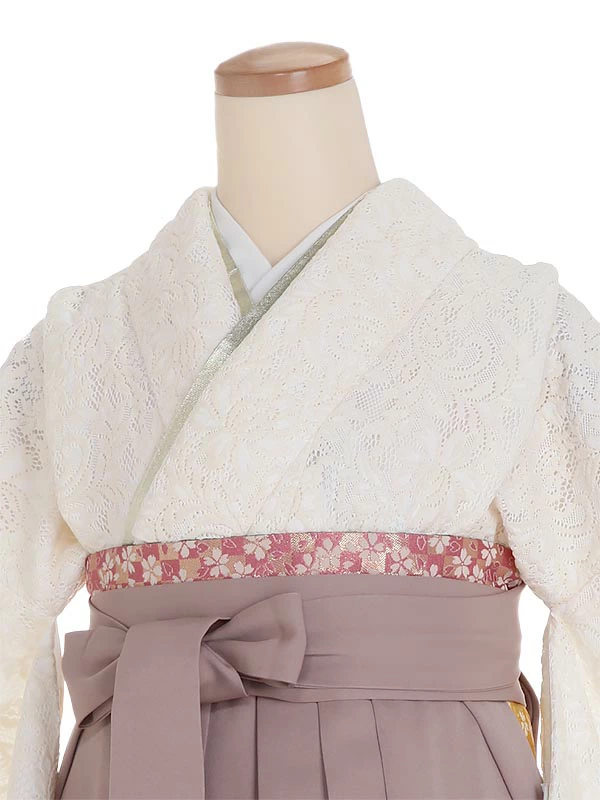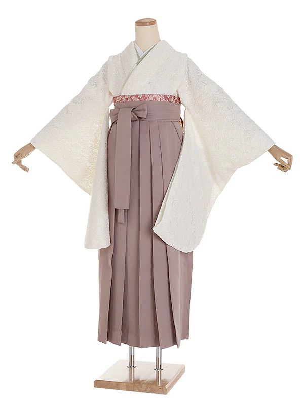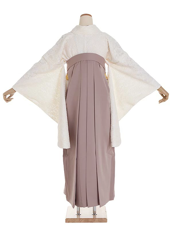 袴 0122 ホワイトフラワーレース×モカブラウン袴