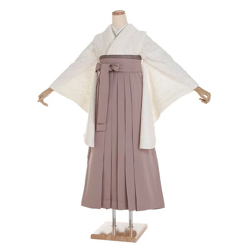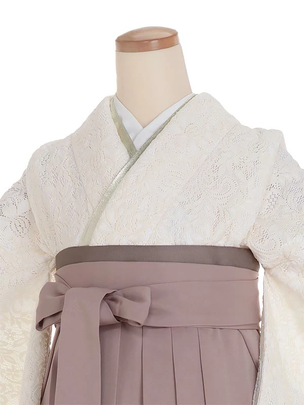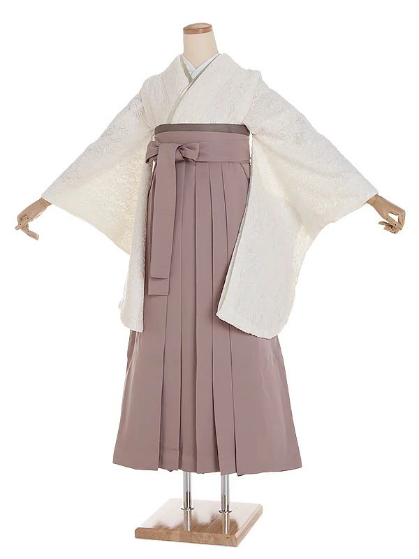 袴 0123 ホワイトフラワーレース×モカブラウン袴