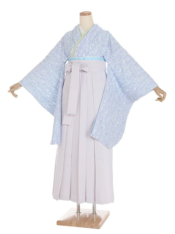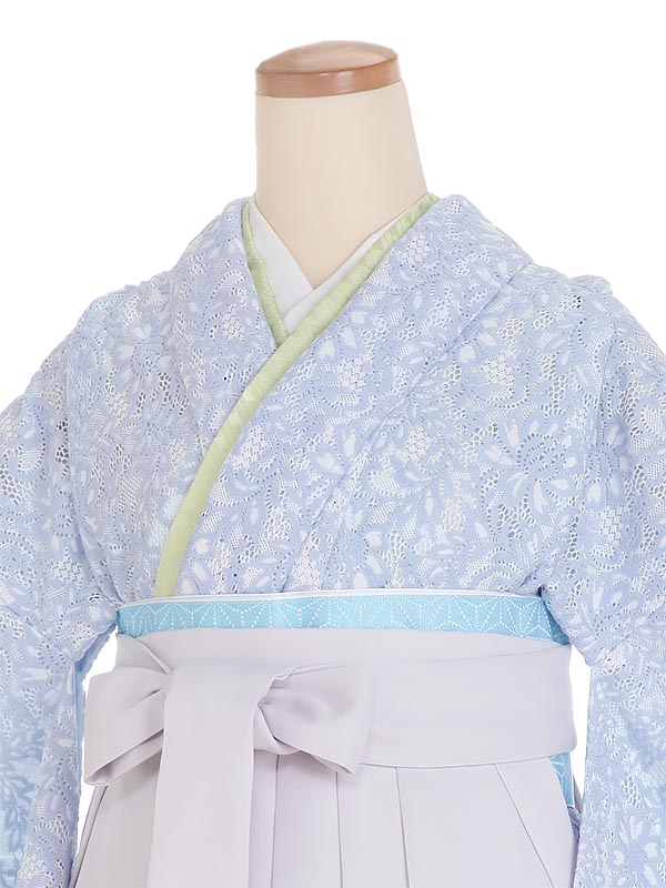 袴レンタル ブルーフラワーレース×薄紫袴 158cm-163cm [7号-13号] 大学生 卒業袴 貸衣装 女性 着物 専門学校 謝恩会 和装【0AG0129】