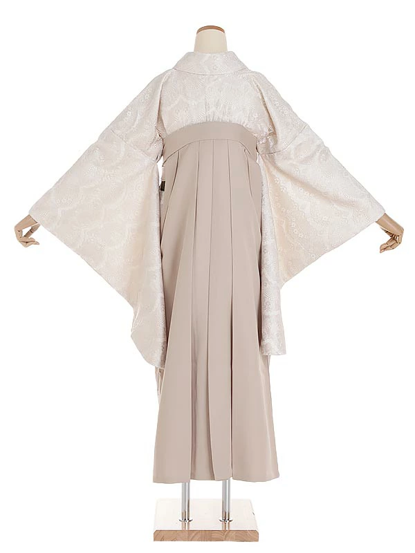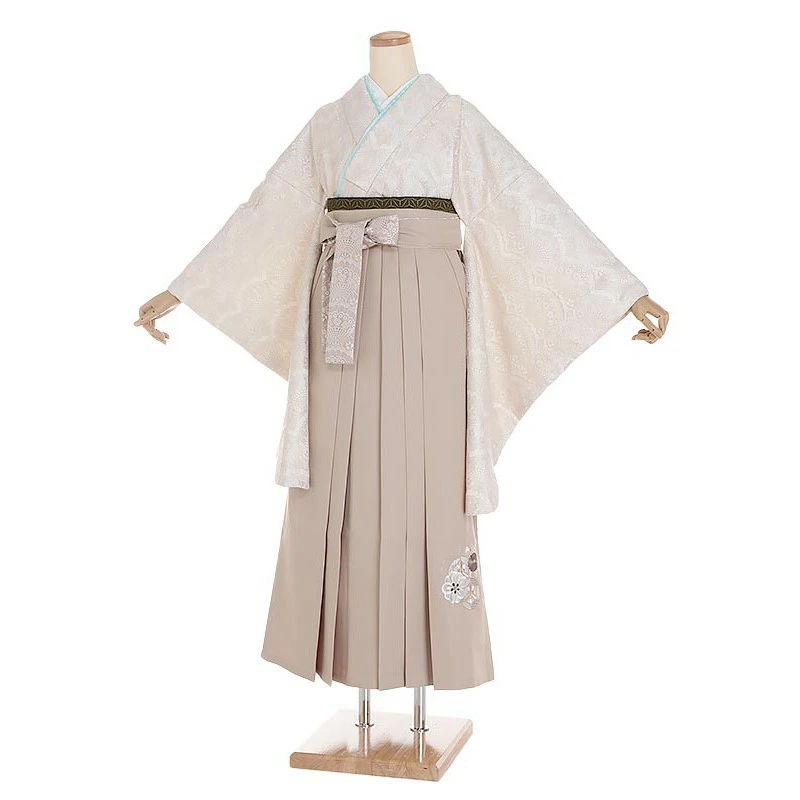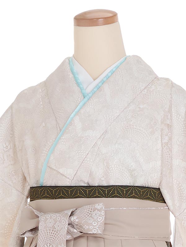 袴レンタル ベージュラメレース×モカブラウン袴 153cm-158cm [7号-13号] 大学生 卒業袴 貸衣装 女性 着物 専門学校 謝恩会 和装【0AG0133】