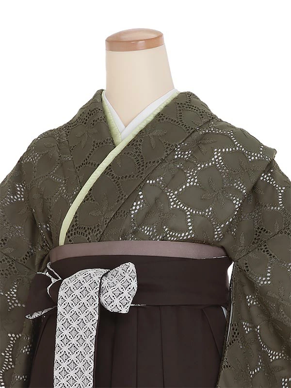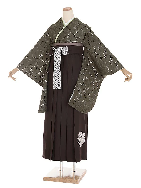 袴 0138 カーキレース×ダークブラウン袴