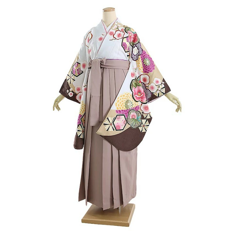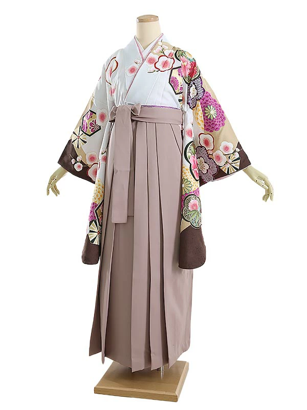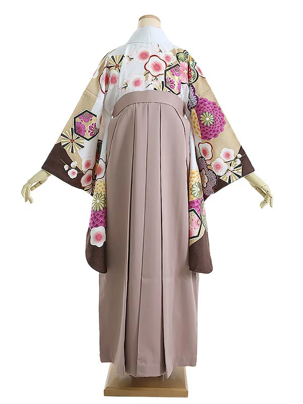 袴 0152 白×茶 梅と丸菊×モカブラウン袴