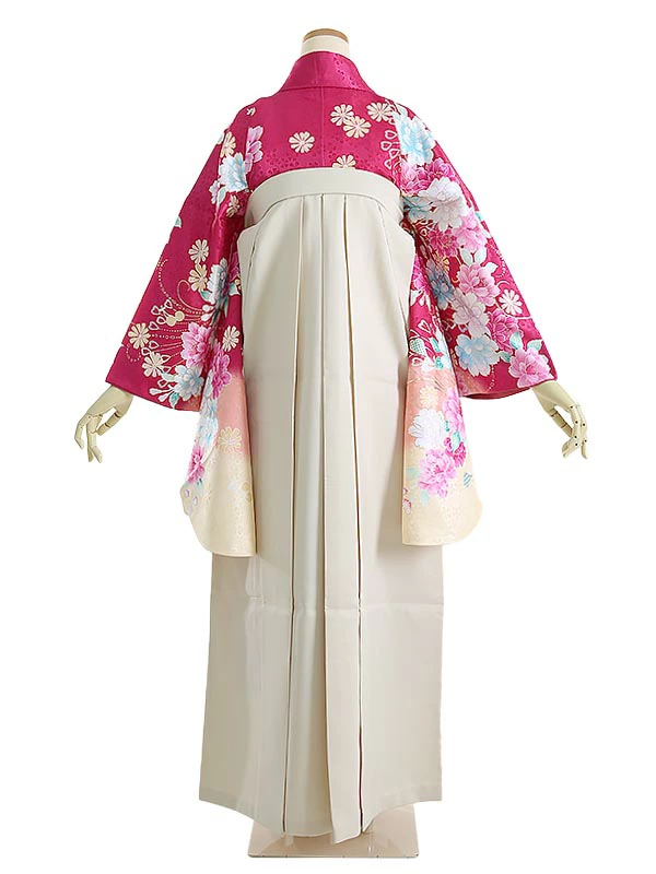 袴 0155 濃ピンクに花模様×ベージュ袴