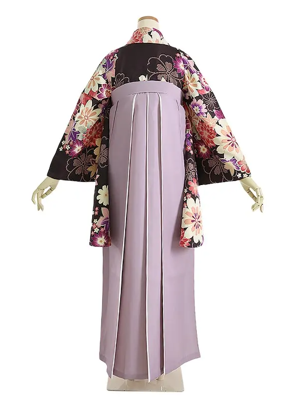 袴 0157 ダークブラウンに花模様×くすみピンク袴