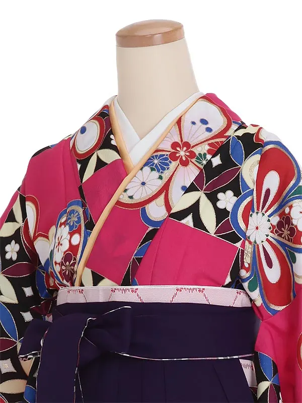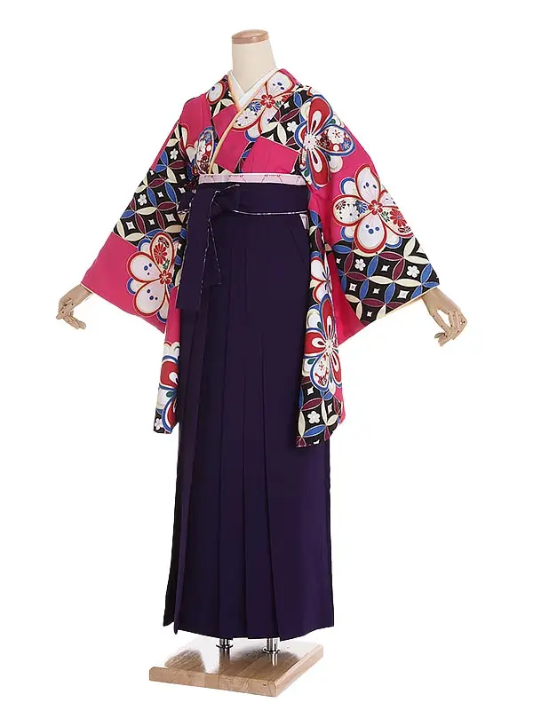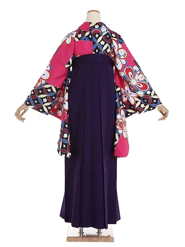袴 レンタル 0166 レトロモダン 七宝に梅 マゼンタ×パープル袴 対応身長160cm〜165cm サイズ7号〜13号【0AG0166】