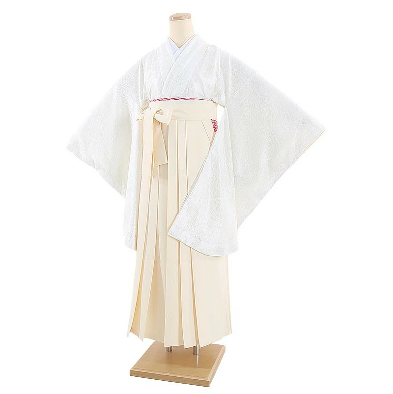 袴レンタル B007 白レース生地着物×クリーム袴セット 153cm-158cm [7号-13号] 大学生 卒業袴 貸衣装 女性 着物 専門学校 謝恩会 和装【0AGB007】