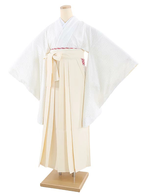 袴 B007 白レース生地着物×クリーム袴 小柄