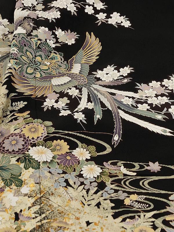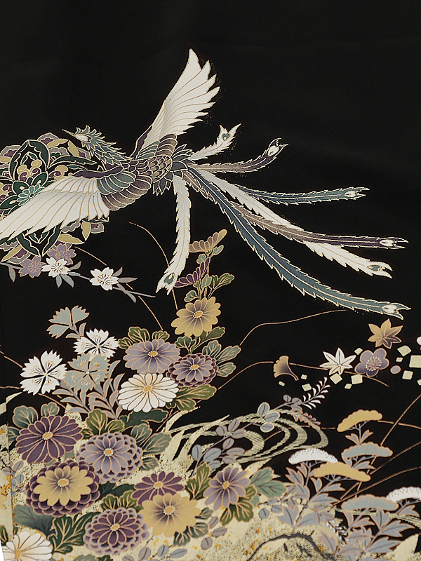 ■色:黒 ■柄:鳳凰つがい 流水に秋草花