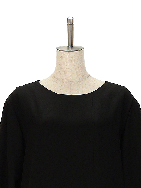 着物の黒留袖から仕立てたフォーマルウェアです。結婚式で新郎新婦のご親族が留袖の代わりとしてご着用いただけます。着付けもラクで、動きやすく疲れにくいため人気です。