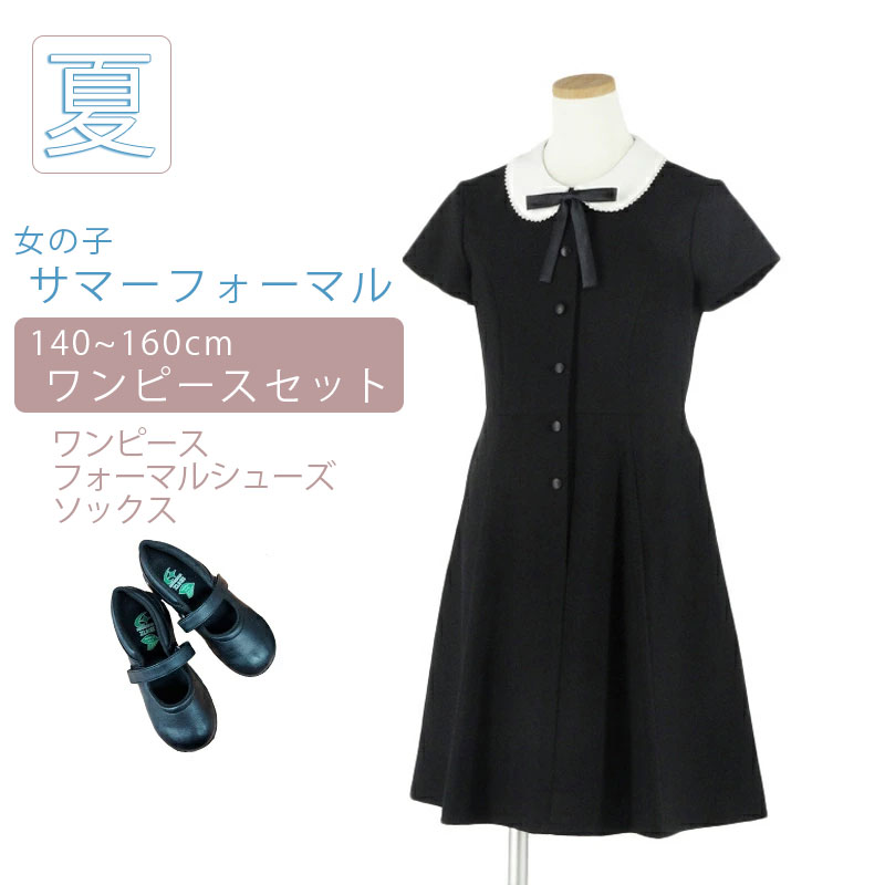 白襟半袖ワンピースセット 100cm 110cm 120cm 130cm キッズフォーマル ブラックフォーマル